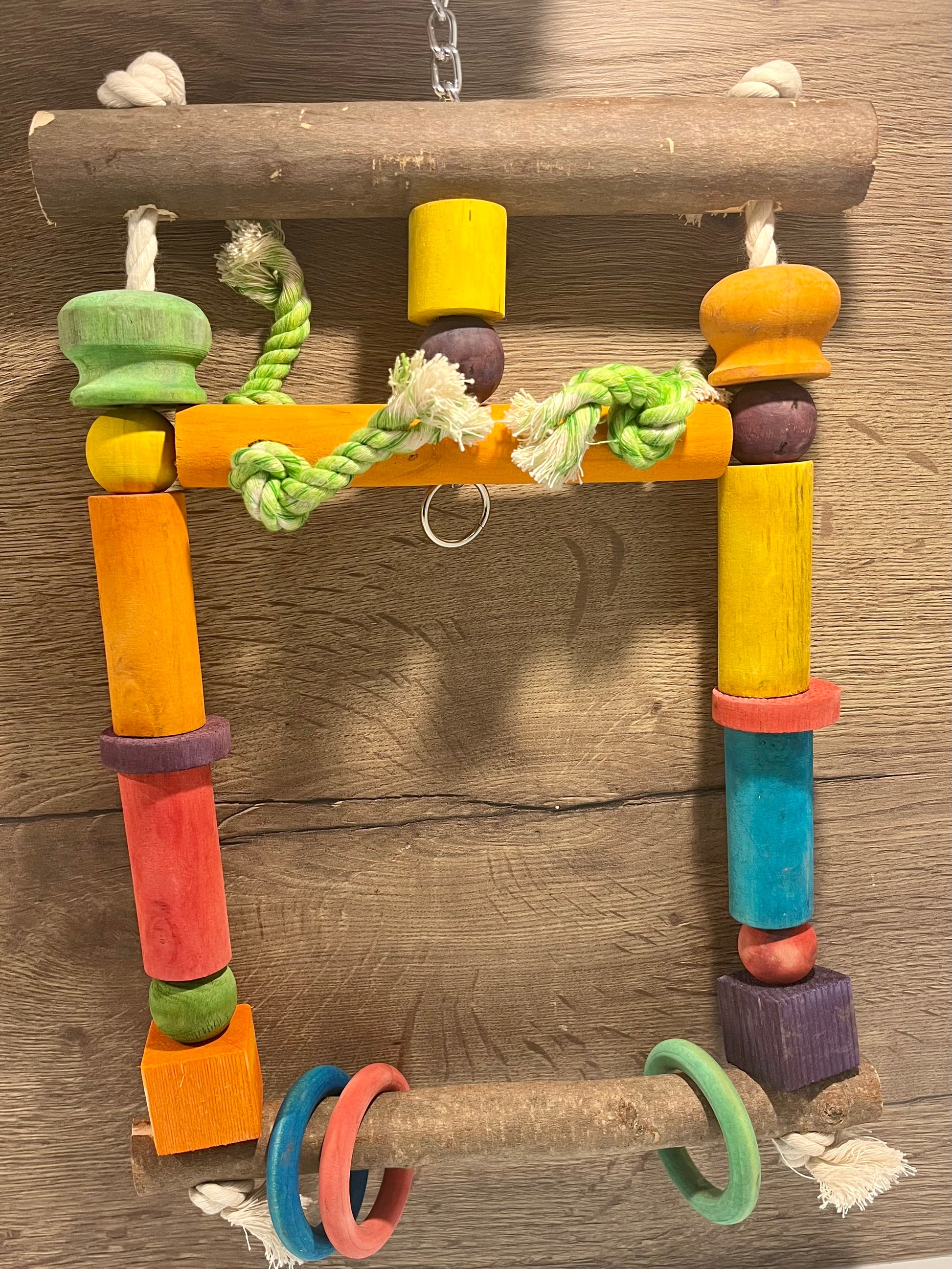 A great swing toy for your pets cage with interactive pieces made with thick wood for better longevity
