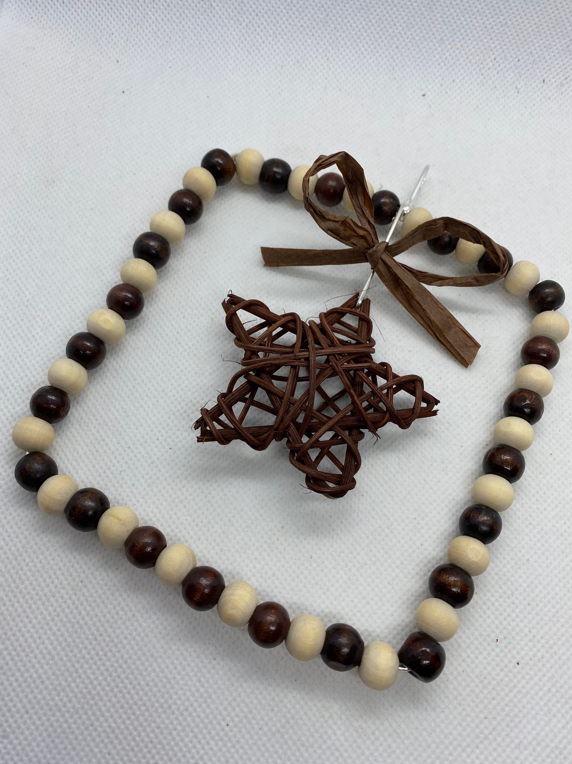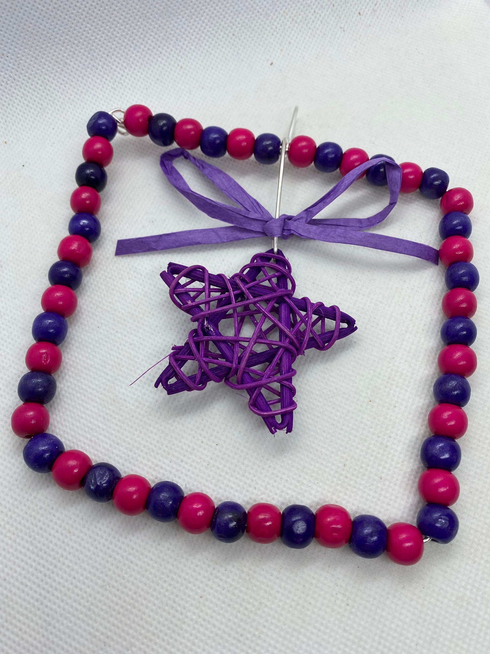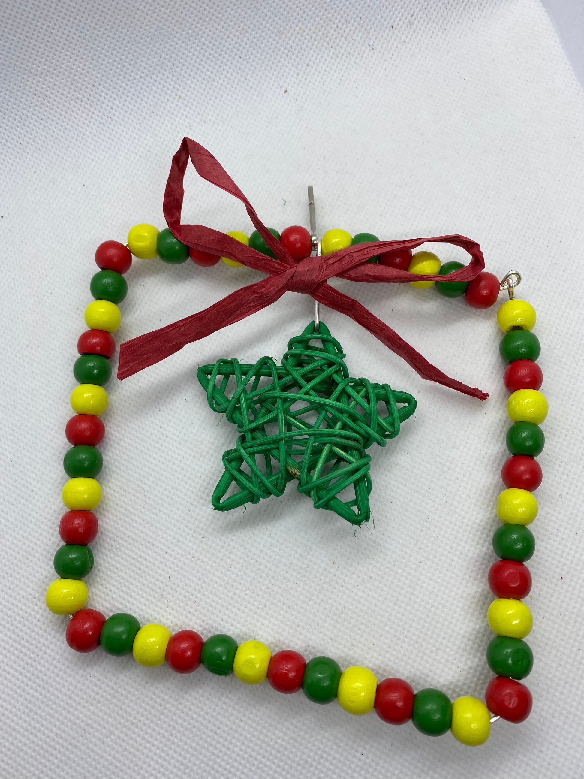 Treat your pet to their own present with this cute hanging toy. Handmade with wooden beads, rattan star and completed with a raffia bow.