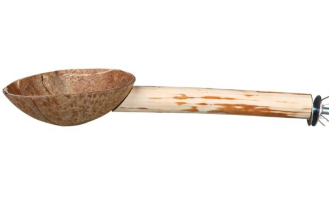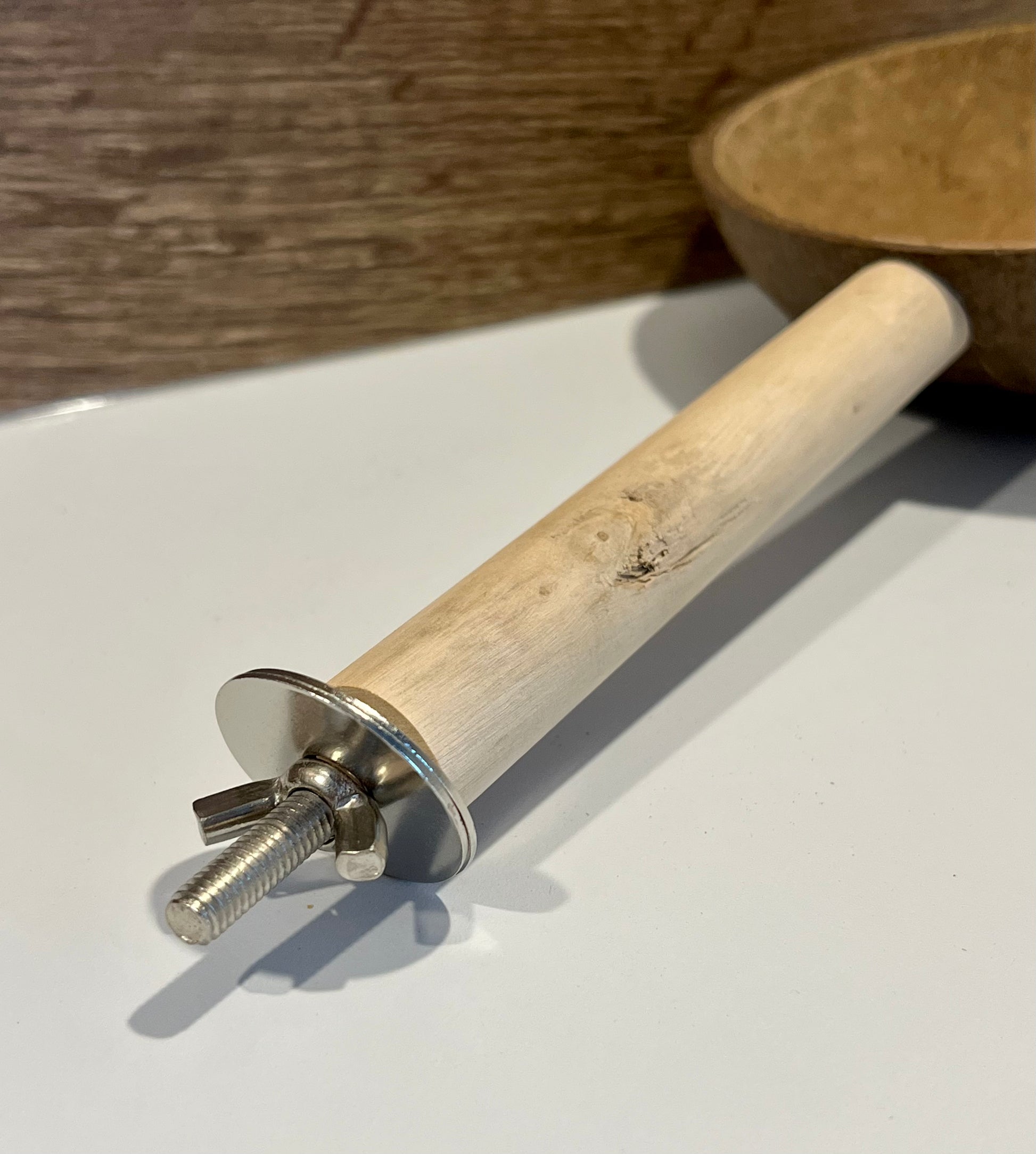 A perch and a bowl in one! Easily attach the perch to the cage bars with the washers and nut. Place some of your pets dry food or treats into the bowl. Not suitable as a water dish.