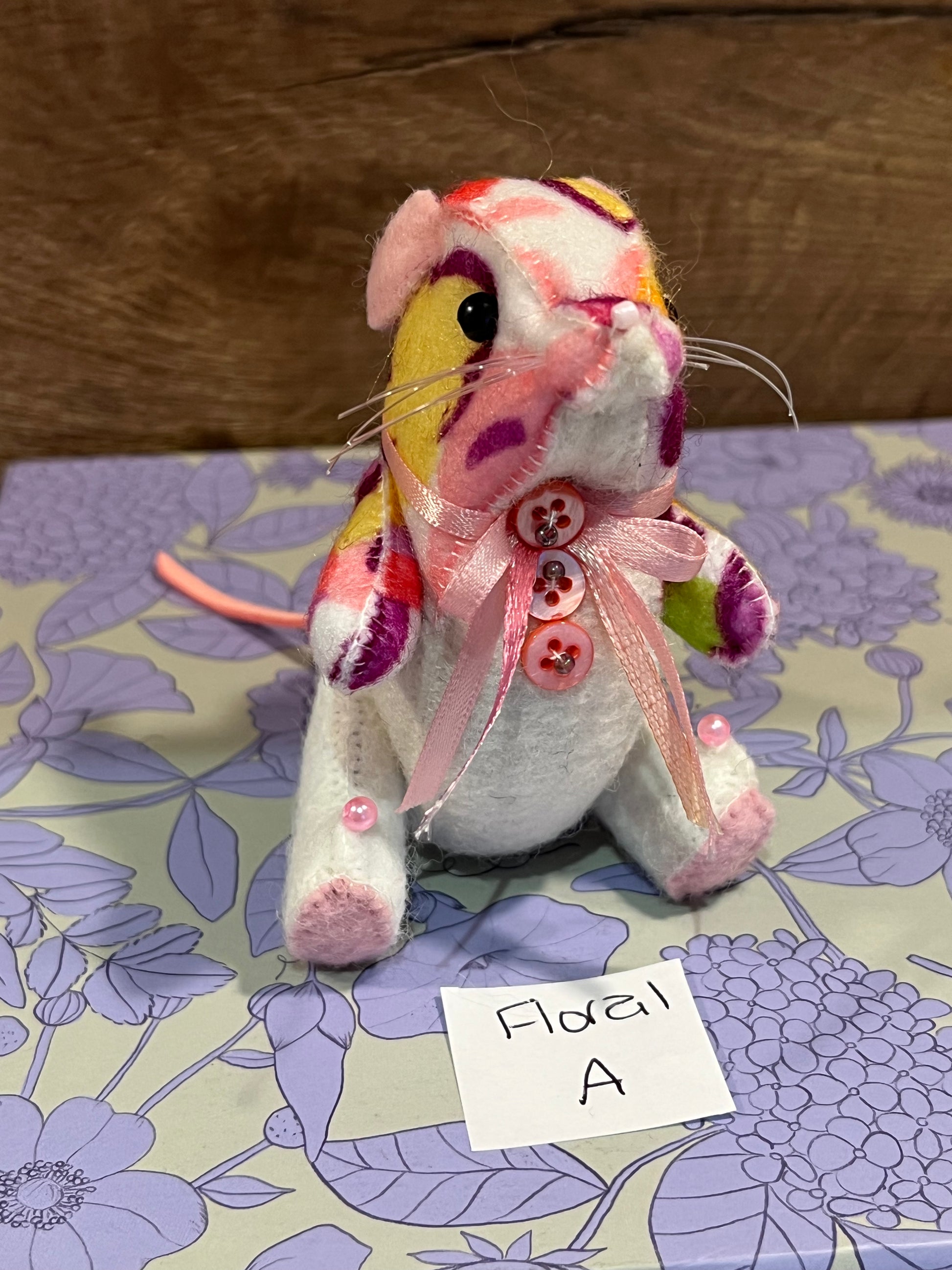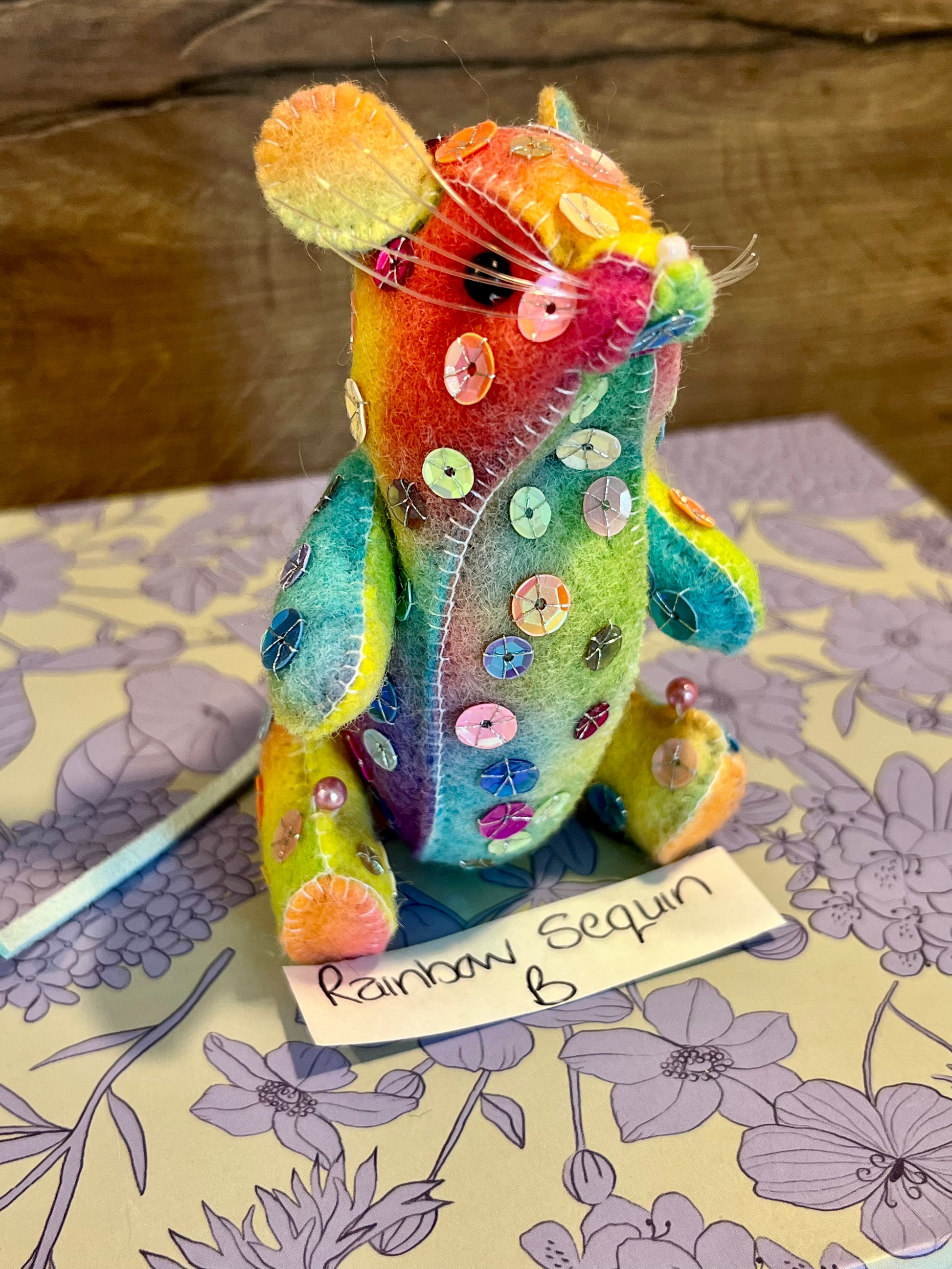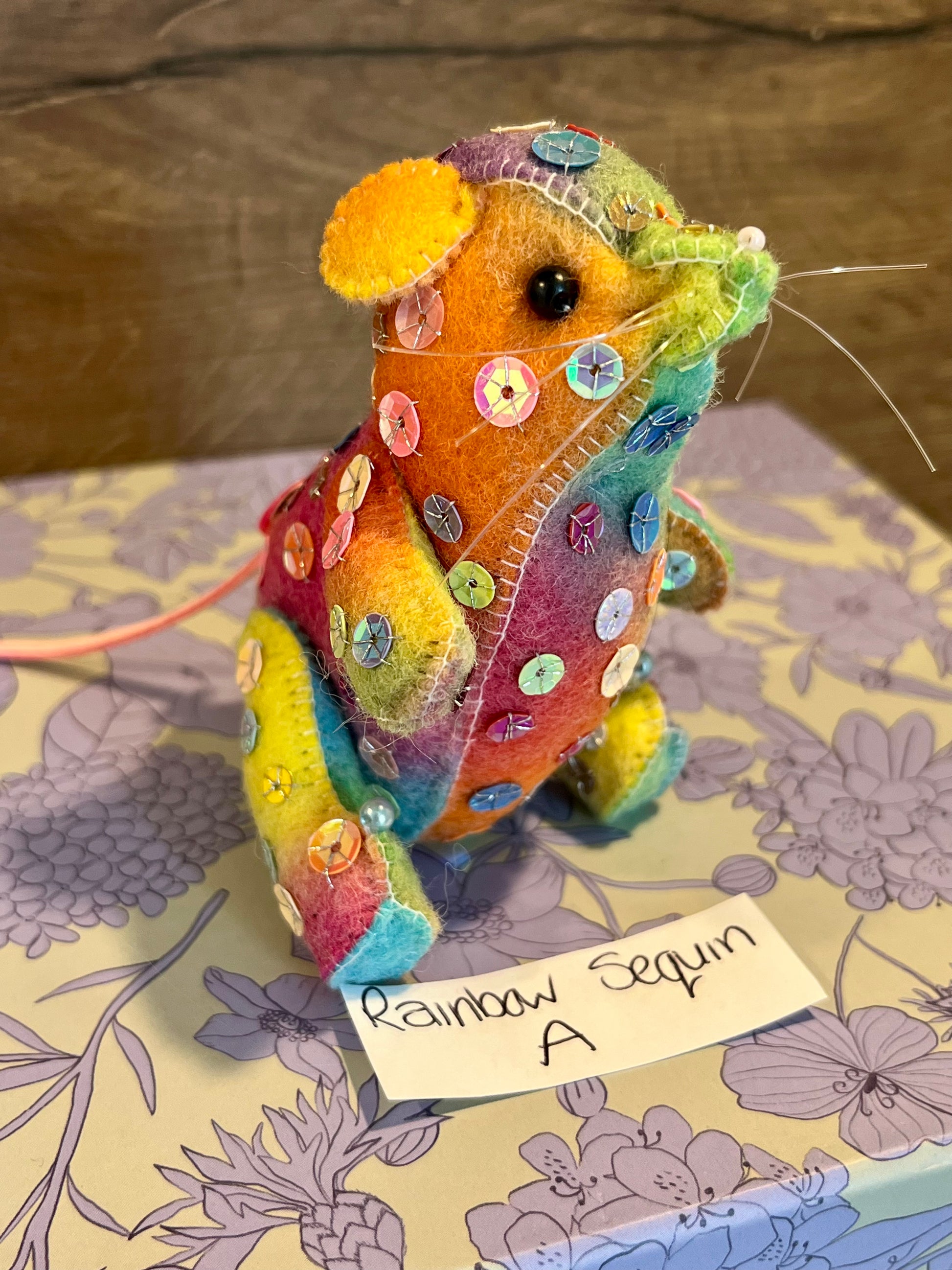 Hand made tiny rats 🐀. These Ratarinas are lovingly made by Eilish so each one is unique! Choose from a rainbow option or opt for a more natural version. The legs and arms move so you can adjust the pose slightly.