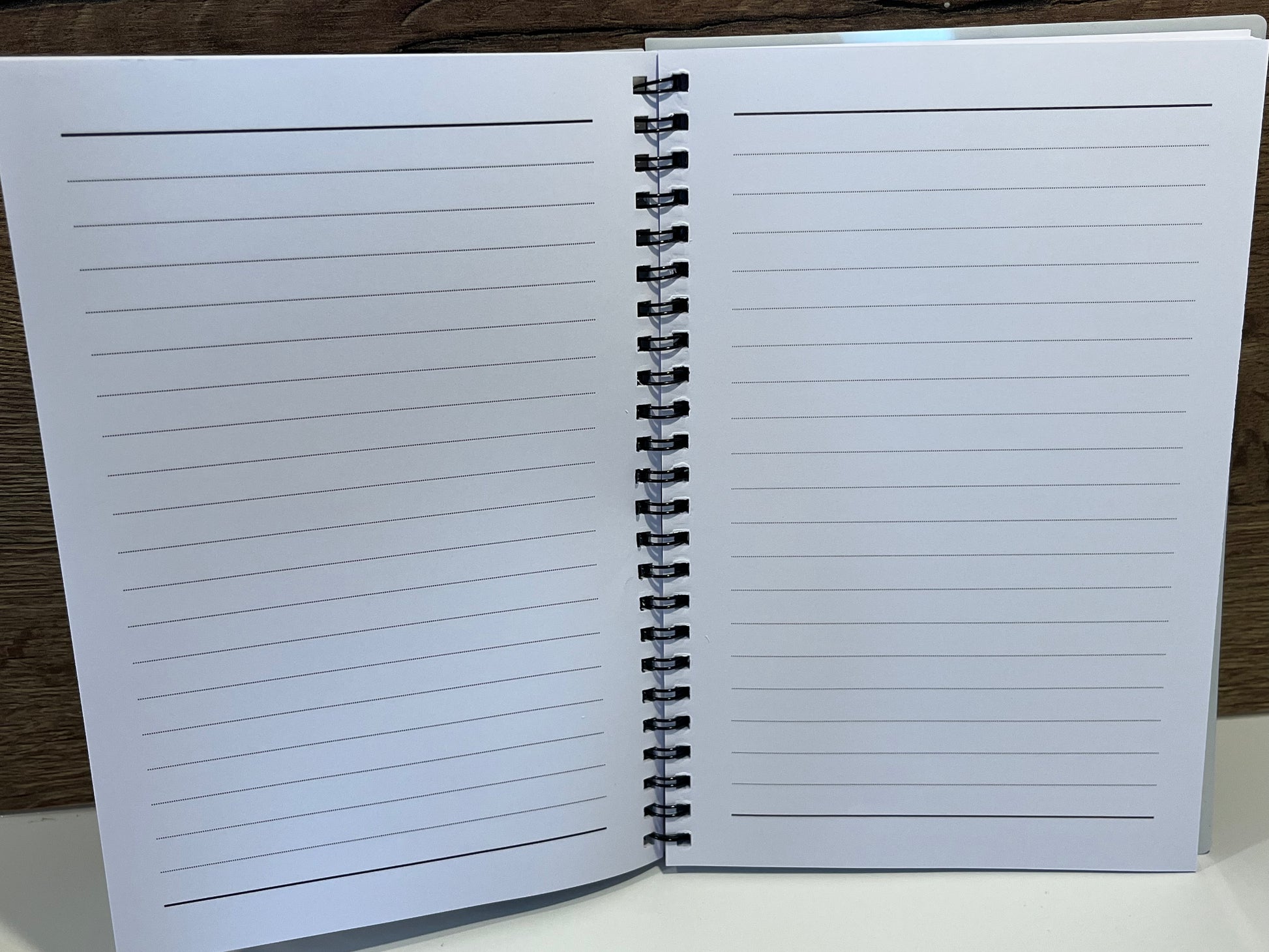 A5 lined notebook. 60 pages with a plastic cover. Dimensions 21x14cm