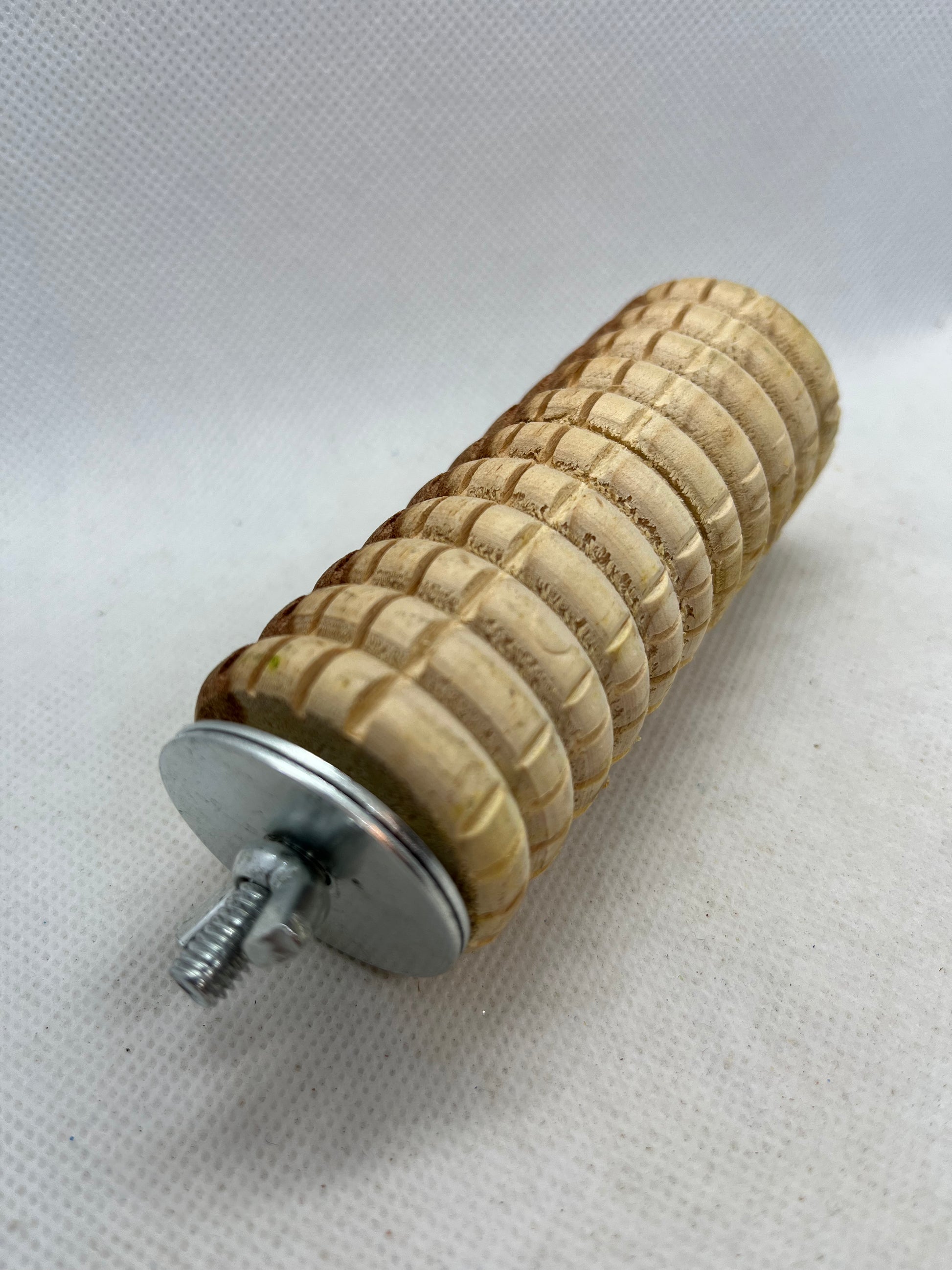 A chunky natural perch with washers and wingnut to attach to the cage bars.