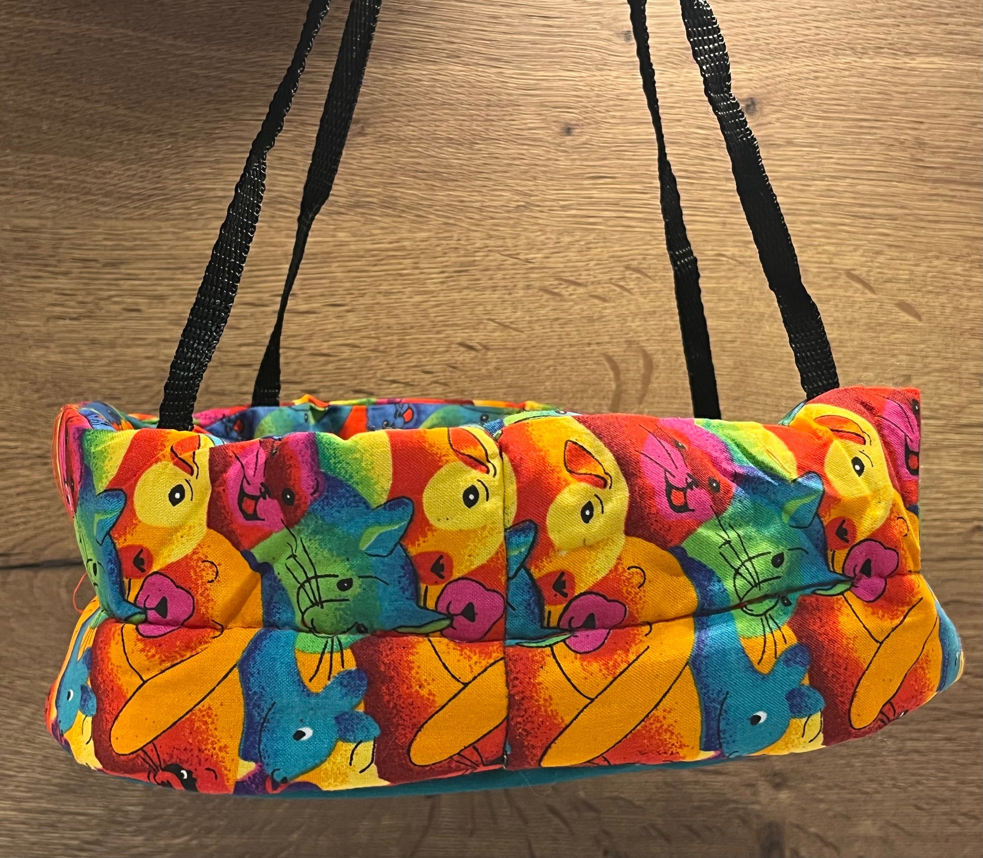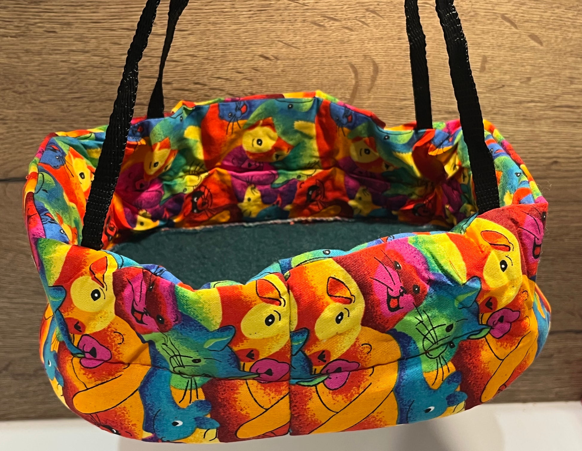 A cute padded bed for your pets with four clips to attach to the cage.