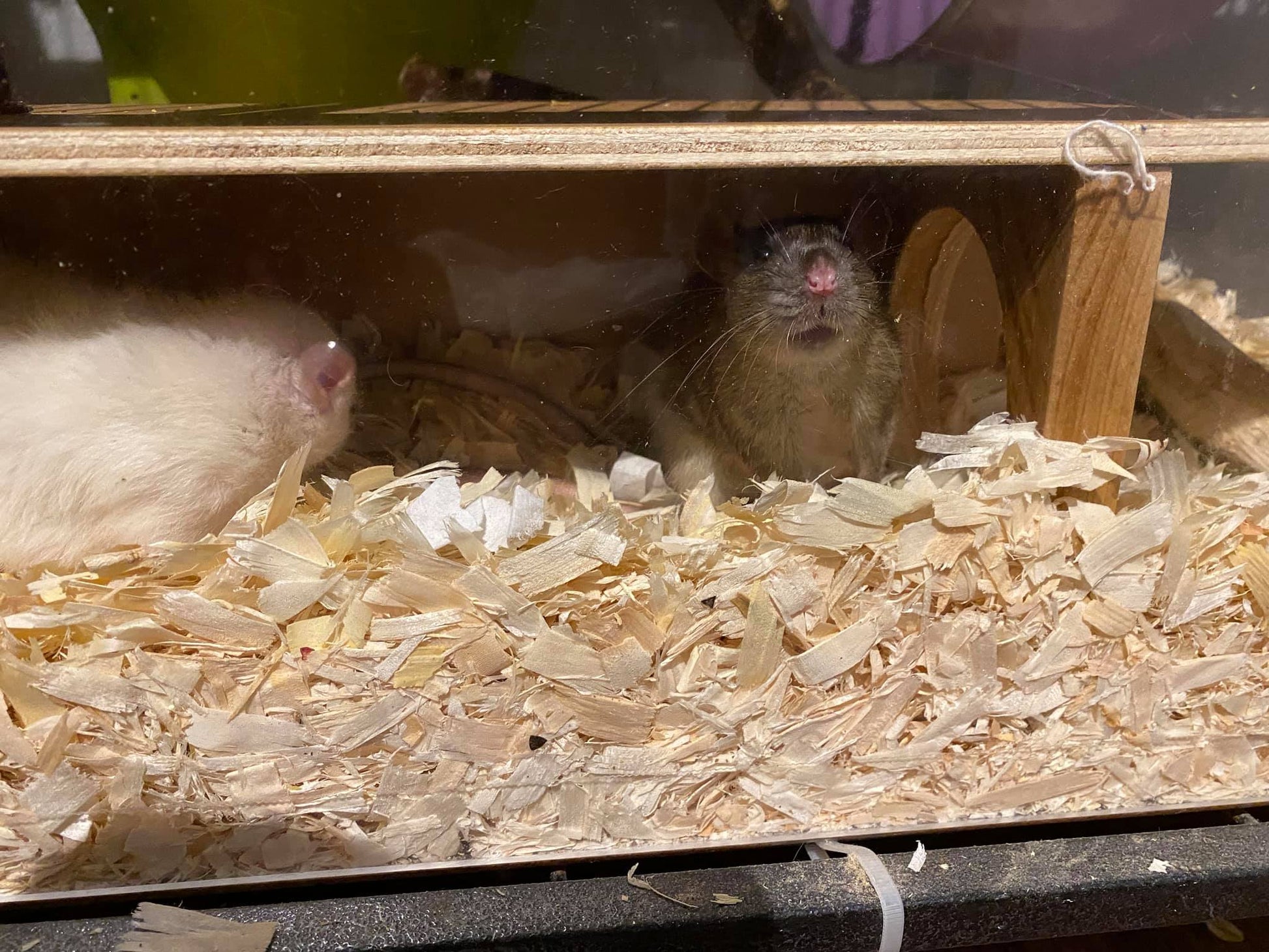 A wooden house suitable for rats! Place up against the perspex of your cage to be able to watch your pets while they sleep.